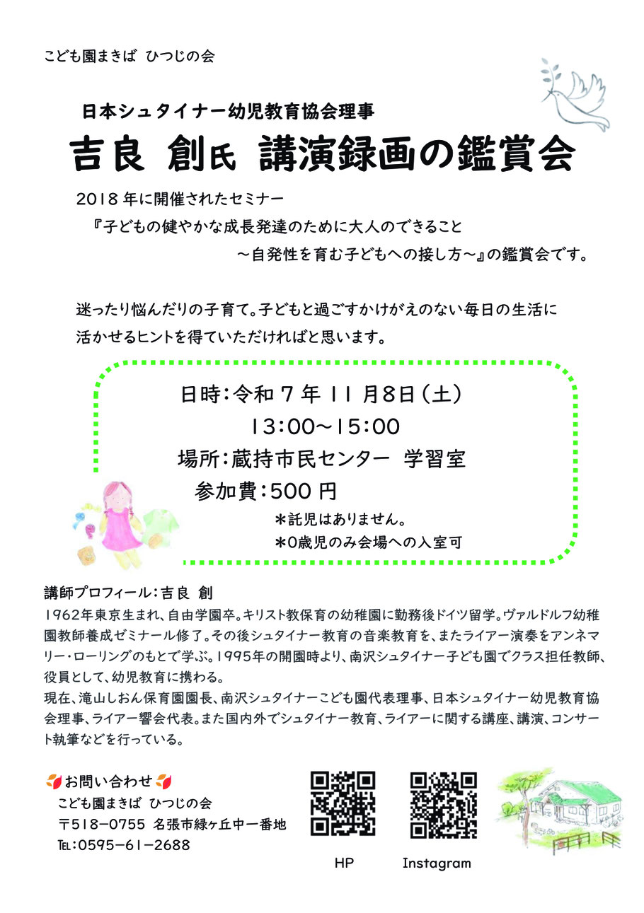 現在、滝山しおん保育園園長・南沢シュタイナーこども園代表理事・日本シュタイナー幼児教育協会理事・ライアー響会代表。